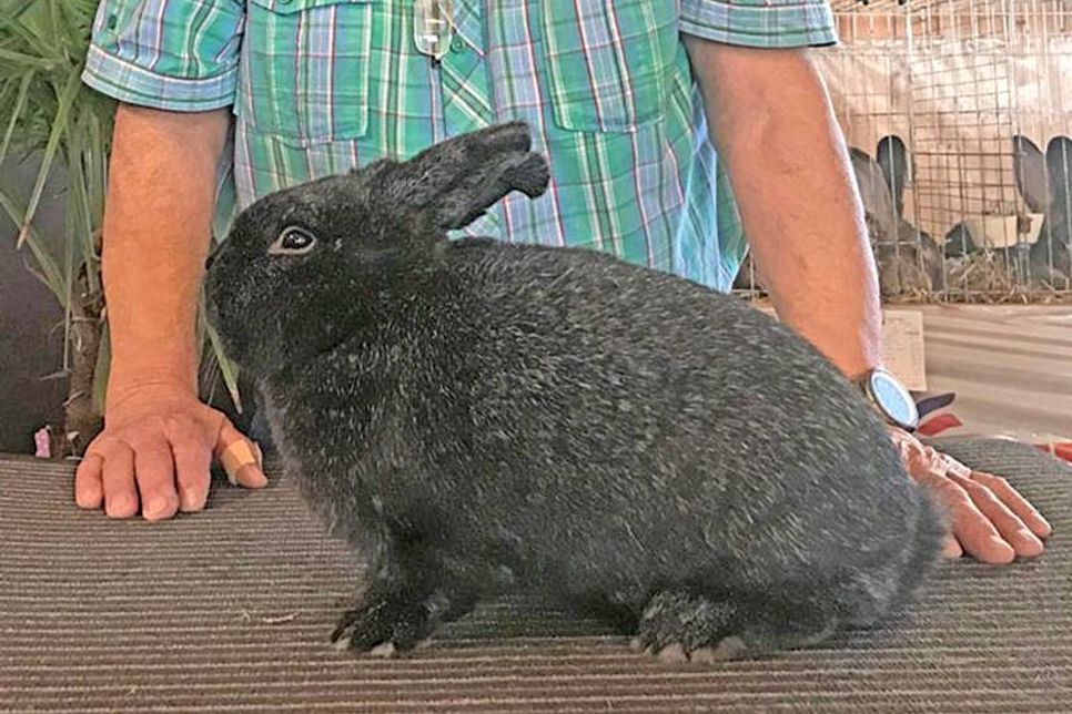 Das schönste Kaninchen der Schau ist jedoch ein Tier der Rasse „Kleinsilber, schwarz“ und gehört dem Vereinsmitglied Raimund Stahl. Die Besonderheit der Rasse wird so beschrieben: „kleines frohwüchsiges Nutzkaninchen mit Silberung.“ Letzteres bedeutet, dass in dem dunklen Fell helle, silberfarbene Haare durchschimmern. Das Gewicht liegt bei rund drei Kilogramm. Die Freude steht dem Züchter ins Gesicht geschrieben – er ist hochzufrieden mit seinem Sieger.