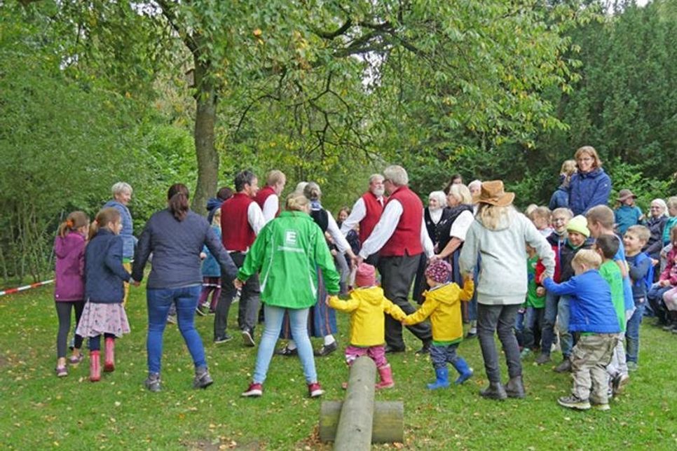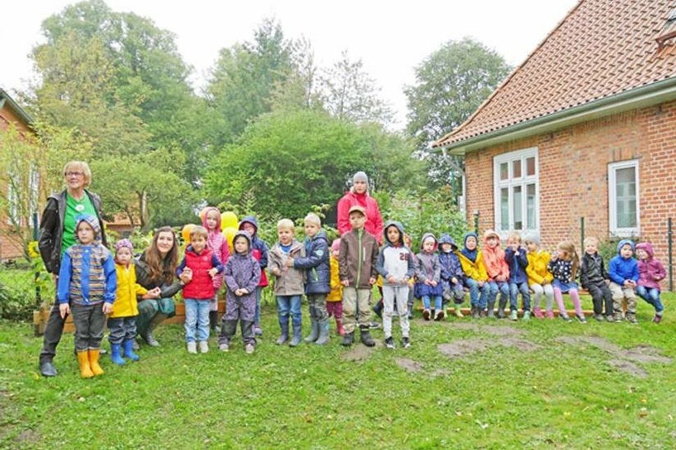 Die Kinder standen auch währen der Feierstunde immer wieder im Mittelpunkt und trugen mit einigen Liedern und einem gemeinschaftlich vorgetragenen Gedicht über die Sonnenblume zum Festakt bei, bevor dann Spiel und Spaß auf dem Programm stand. Nach einer gelungenen Vorführung der Tanzgruppe De vergnögten Danzlüt zum Anschauen und Mitmachen wurde der Tag mit einer Vorstellung des Figurentheaters Wolkenschieber. Ein besonderes Geschenk überreichte der Leiter der Ahrensböker Geschäftsstelle der Sparkasse Holstein Timo Stich mit Unterstützung des Sparkassen-Maskottchens Sebi Seebär an Elke Sieck anlässlich des 25jährigen Jubiläums: Mit einen Spendenscheck in Höhe von 500 Euro kann die Kindertagesstätte nun ein Fohlen für das beliebte Holzpferd auf dem Außengelände der Kita anschaffen. Dann können auch die 3jährigen problemlos aufsatteln und mit ihren größeren Spielkameraden um die Wette reiten.