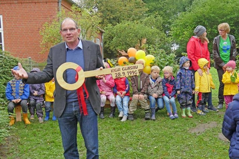 Sarau (t). Im September 1996 übergab die Gemeinde Glasau den Schlüssel zu ihrer neu gebauten Kindertagesstätte an die Einrichtungsleiterin Elke Sieck. Nach 25 Jahren wurde dieser Schlüssel nun an den neuen Träger der Kindertagesstätte Schatzkiste an den Kinderschutzbund Kreisverband Ostholstein e.V. im Rahmen der 25 Jahr-Feier am 24. September 2021 weitergegeben. Familien und Freunde der Kindergartenkinder sowie alle Interessierten aus Glasau und Umgebung waren eingeladen, auf dem großen Außengelände der Kindertagesstätte Schatzkiste zu feiern und den Kindergarten sowie das pädagogische Team außerhalb des Gruppenalltages kennen zu lernen. Die gerade neu erlassene Corona-Verordnung des Landes Schleswig-Holstein zur Durchführung von Veranstaltungen ließ es zu, dass zahlreiche Gäste im Rahmen der 3G-Regel der Einladung folgen konnten, auch wenn das Wetter nicht unbedingt zum Aufenthalt im Freien einlud.