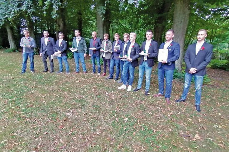 Der 1. Ältermann Hans-Peter Flindt begrüßte die Anwesenden und endlich konnten wir den König nach langer Zeit den König mal wieder „hochleben“ lassen! Im Anschluss wurde den verstorbenen Gildemitgliedern gedacht. Dann wurde ein Rückblick auf die Zeit seit dem Gildeball 2020 als letzte Veranstaltung der St. Johannis Toten-und Schützengilde gehalten. Auch während der Pandemie ist der Gildevorstand tätig gewesen. Sitzungen fanden statt, auch wurde eine Videokonferenz mit den Zeltvätern abgehalten. Der zweite Ältermann Uwe Wolters und der 3. Ältermann Karsten Prokoph hielten ebenfalls einen Rückblick auf die zurückliegende Zeit. Nach dem Bericht der Revisoren für die Jahre 2019/2020 und 2020/2021 wurde den verantwortlichen Älterleuten einstimmig Entlastung erteilt. Der Gildevorstand hat für die Jahre 2020 und 2021 beschlossen, die Sterbebeihilfe in der bisherigen Höhe beizubehalten und die Gildebeiträge zu senken. Diese Beschlüsse wurden von der Mitgliederversammlung nachträglich sanktioniert. Nun wurden die neuen Gildemitglieder begrüßt, traditionell mit der Übergabe der Plaketten und einem Schluck Wein aus dem „goldenen Apfel“. Dieser kam jedoch pandemiegerecht nicht zum Einsatz, es wurden jedem neuen Gildemitglied dazu ein einzelnes Glas gereicht.