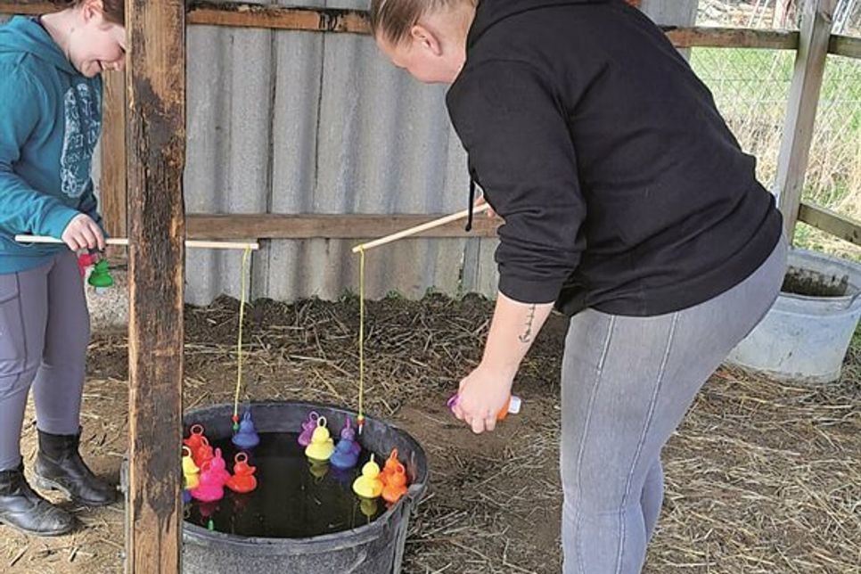 Der Osterhase hatte im Stall und auf den Wiesen unzählige Ostereier und Schokohasen versteckt und die Kids konnten es kaum erwarten, danach zu suchen. Selbstverständlich war dafu¨r gesorgt, dass auch wirklich jedes Kind eine Ostertu¨te mit nach Hause nehmen konnte. Nachdem alle Osternaschis aufgestöbert waren, begann der Eierlauf u¨ber den Hindernis-parcours, das Entenangeln und Ponyreiten auf unseren Pferden und Eseln. Zusätzlich konnten sich unsere Gäste gegen eine kleine Spende bei Kaffee, Tee und Kuchen oder einem Kaltgetränk stärken. Wir alle hatten eine Menge Spaß mit unseren Besuchern und auch unseren Gästen scheint es gefallen zu haben, denn es wurde immer wieder die Frage gestellt, wann wir das nächste Event planen.
