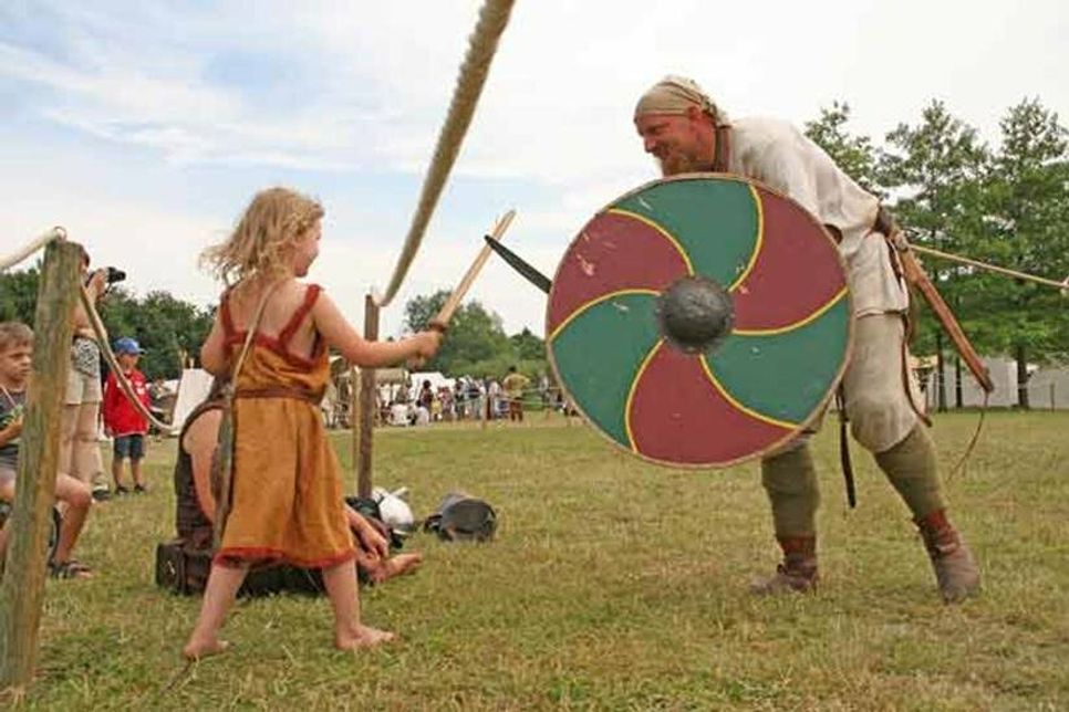 Oldenburg. (sm) Das Oldenburger Wallmuseum rüstet sich für einen neuen Aktionstag „Mittelalter erleben“: Am Samstag, den 27. August, bewaffnen sich die Leute von Starigard ab 10 Uhr zur Verteidigung ihres mittelalterlichen Slawendorfes. Für die slawischen Bewohner Oldenburgs, damals „Starigard“ genannt, gehörte um das Jahr 1000 die Bedrohung durch Dänen, Sachsen und slawische Nachbarstämme zum Alltag. Es kam häufig zu kriegerischen Auseinandersetzungen. Viele Kämpfer waren einfache Bauern. Die Bewaffnung dieser Fußkrieger bestand aus Werkzeugen des täglichen Lebens, die rasch und kostengünstig herzustellen waren. Messer und Äxte waren in jedem Haus zu finden; Pfeil und Bogen sowie Speere wurden zur Jagd benutzt. Nur wenige dieser Kämpfer hatten zum Schutz einen Schild zur Verfügung. In Großburgen, wie es Starigard war, gab es aber auch Reiterkrieger. Sie stammten aus einer höheren gesellschaftlichen Schicht und ihre Ausrüstung war qualitativ wertvoller: ein zweischneidiges Schwert, ein großes hölzernes Schild mit eisernem Schildbuckel, Kettenhemd und Helm ließen sie auf ihren Pferden zu gefährlichen Kämpfern werden. Auf der Museumsinsel werden in der Zeit von 10.00 – 17.00 Uhr mittelalterliche Kampftechniken mit Speer, Schwert, Axt und Bogen gezeigt. Die Bewohner der Hafensiedlung sowie die Schaukämpfer der Gruppen Legio Holsatia und Jombsborg Starigard weisen ihre Besucher dabei gern in die Grundlagen des Schaukampfes ein und beantworten ihre Fragen. Die Gäste können unter Anleitung auch selber einmal ausprobieren, wie es sich mit Pfeil & Bogen schießen und treffen lässt. Für Jung und Alt gibt es die Möglichkeit, Kettenhemden zu flechten oder mit einem echten Wikingerschiff den Wallsee unsicher zu machen. Außerdem können angehende Jungkrieger in Geschicklichkeitsspielen ihre Treffsicherheit schulen, bevor sie mit gepolsterten Waffen beim Burgvoigt in die Kampfschule gehen. Alle Informationen zu dieser Veranstaltung erhalten Sie unter Tel. 04361-623142 oder www.oldenburger-wallmuseum.de.