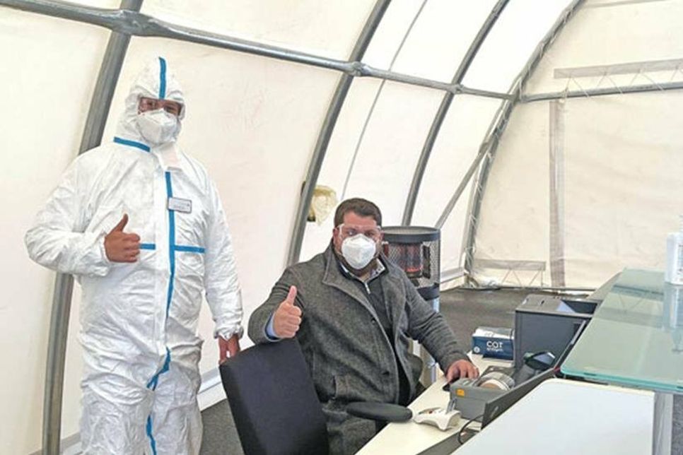 Sollte der Befund positiv ausfallen, kann, und das ist wirklich ein landesweit sehr besonderes Angebot im Bereich mobiler Testzentren, ohne Umstände und Zeitverzug direkt im Testzentrum sogar ein hochsensitiver PCR-Test zur Kontrolle nachgeschoben werden. Das Ergebnis liegt dabei nach maximal 36 Stunden vor. „Sorgen um die Datensicherheit sollten dabei insgesamt nicht bestehen, denn die verwendete Software stammt aus Deutschland, wird auf deutschen Servern bereitgestellt und genügt damit den nationalen Datenschutzverordnungen“, ergänzt der Warenhausleiter und bittet dann noch eindringlich um rücksichtsvolle Beachtung der in Kürze mit der Firma Feldhoff Digitaldruck & Werbetechnik gefertigten Wegführung und Beschilderung zur Gewährleistung eines reibungslosen und sicheren Testablaufes. Glücklich zeigt sich Herr Wagner über das Einsteigen der Pflegefuxx – Merkur Service und Dienstleistungs - GmbH aus Norderstedt in das Projekt. „Das sind absolute Profis für Gesundheits-Dienstleistungen, die hier die praktische Ausführung übernehmen, 2017 gegründet, 360 Mitarbeiter, mehrfach ausgezeichnet als Top-Arbeitgeber, Niederlassungen auch in Kiel, Lübeck und demnächst Rostock“, führt Herr Wagner aus. Außerdem bezeichnet er diese Konstellation als einen Glücksgriff auch hinsichtlich der gesamten bürokratischen und technischen Erfordernisse. „Es sind schon recht viele gesetzliche Vorgaben und Schutzregeln zu erfüllen, diverse Anträge zu stellen bei verschiedenen Behörden und Institutionen, Mitarbeiter einzustellen, Erstinvestitionen, z.B. in das Testzelt zu tätigen“, beschreibt Herr Wagner den Kraftakt der letzten Tage. „Jetzt aber steht alles und die ersten knapp 100 Testpersonen sind bereits „durchgeschleust“ worden“, berichtet Herr Wagner.