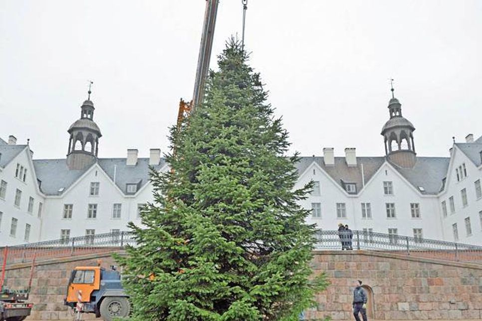 Plön (los). Plöns BürgervorsteherDirk Krüger und Bürgermeister Jens Paustian laden zum „Anleuchten 2016“ auf der Schlossterrasse. Eine 12,5 Meter hohe und zweieinhalb Tonnen schwere Nordmanntanne, gestiftet von Professor Günther Fielmann, ist vor einigen Tagen frisch gefällt, angeliefert und mit insgesamt 2200 kleinen Leuchten in langen Ketten behängt worden. Der Lichterglanz startet vor dem 1. Advent am Freitag, 25. November um 18 Uhr. Das Plöner Schloss, die Fielmann Akademie Schloss Plön, ist dann für drei Tage die malerische Kulisse einer Veranstaltung, die in der Vorweihnachtszeit wohl eine der Stimmungsvollsten in der Region sein dürfte. Hierfür sorgt nicht nur die rund 30 Jahre alte Tanne, die das malerische „Postkartenmotiv“ hoch über dem Plöner See perfekt macht, sondern auch die musikalische Einstimmung durch das Kieler Blechbläserensemble, das auf der Rampe zum Schlosshof spielt, und den Auftritt des Kieler Knabenchors in der historischen Kapelle und auf der Schlossterrasse. Ein Budenzauber versüßt den Besuchern die Zeit mit allem, was „Leib und Seele“ zusammen (und auch warm) hält, darunter kulinarische Kleinigkeiten aus dem Pförtnerhaus. „Baum fällt!“ hieß es dafür zunächst vorab in einem Vorgarten in Rastorf. Denn anders als in den Vorjahren stammt der neue Weihnachtsbaum am Schloss weder aus Forst noch Baumschule sondern aus Privatbesitz. Entdeckt, angeliefert, aufgerichtet und in Position gebracht hat ihn Jochen Trede, Trede Walddienst GmbH in Preetz. „Da die Baumschule nicht liefern konnte, wurden wir angesprochen“, erzählt der Diplom Forstingenieur. „Und wenn man dann mit offenen Augen durch die Landschaft fährt...“ Allerdings gebe es bei Bäumen aus dem Hausgarten häufig einen Haken: „Sie müssen für uns mit dem Kran noch erreichbar sein.“ Zwischen Hamburg und Dänemark stiftet Günther Fielmann insgesamt vier Weihnachsbäume in Hamburg Volksdorf, Flensburg, seinem Heimatort Stafstedt und seit 2011 auch in der Kreisstadt Plön. „Alle Jahre wieder“ lockt der spannende Moment, wenn der Start für die Illumination an der Optiker-Akademie angezählt wird, auf den Schlossberg - quasi das „Ah!“ und „Oh!“ zum Plöner Advent.