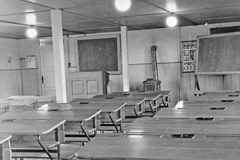 „Eigentlich wollte man schon im Februar 1946 mit der Schule anfangen“, berichtet Karsten Dölger über die Umstände der Einrichtung einer Barackenschule für Plöner Flüchtlingskinder. Das Vorhaben verzögerte sich allerdings, denn „die Baracken waren nicht viel mehr als Außenwände und Dach“. Daher habe es bis August 1946 gedauert, als in der neu geschaffenen Barackenschule mit Unterricht begonnen werden konnte. Hier fand sich der erste Lehrer des Provisoriums Friedrich Gellert in der unglücklichen Lage, ganz allein und ohne weitere Unterstützung 168 Kinder der Klassenstufen 1 bis 5 beschulen zu müssen. Denn eine zweite Lehrerstelle wurde erst im April 1947 eingerichtet, brachte aber kaum Entlastung, weil parallel eine Oberklasse für die 6. bis 9. Klassen eingerichtet wurde, die ihren Volksschulabschluss machen sollten. „Die älteren Schüler sind vorher wohl weiterhin nach Plön zur Schule gegangen“, vermutet Dölger. Später sei eine zweite Baracke in Stadtheide zu schulischen Zwecken dazu gebaut worden.