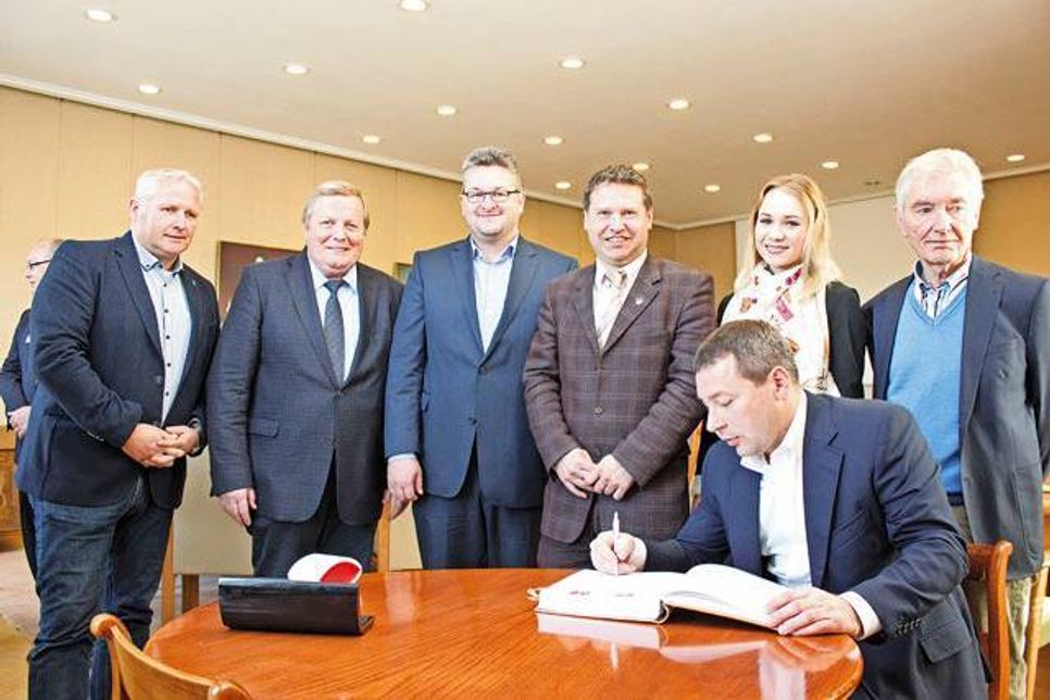 Der Besuch startete am Mittwoch mit einer Begrüßungsrunde im historischen Sitzungsraum des Kreishauses, wo sich der Verwaltungsleiter des Stadtkreises Neman, Andrej Nejman, und seine Begleiter in das Gästebuch des Kreises Plön eingetragen haben. Gemeinsam mit Dr. Thies, dem Hauptausschussvorsitzenden Werner Kalinka, dem Vorsitzenden des Ausschusses für Schule, Kultur und Sport, Tade Peetz, dem Kreissportverbandsvorsitzenden Sven Thode, dem Lehrer Prof. Dr. Detlev Kraack, dem Kreistagsabgeordneten Bernd Friedrich sowie dem bürgerlichen Mitglied Layma Balyk wurde über den bereits erfolgten und stetig fortzuführenden Erfahrungsaustausch in Fragen der Verwaltung, der Jugendbegegnungen, des Sports und der Kultur diskutiert. Viele weitere Punkte standen auf dem Programm. Das Schloss Plön wurde besichtigt und ein Gespräch mit dem Geschäftsführer des Schlosses, Herrn Hellberg, geführt. Der Tourismus stand bei Terminen in Hohwacht im Fokus. Am Donnerstag dann wurden das Fischerei- sowie das Künstlermuseum in Heikendorf und die Heimatstube der Kreisgemeinschaft Tilsit-Ragnit in Preetz besucht. Das Thema Landwirtschaft wurde auf dem Gut Perdoel sowie dem Hof Viehbrook thematisiert. Insgesamt war es ein vielfältiges Programm, durch das die Gäste aus Neman den Kreis Plön von vielen Seiten kennenlernten.