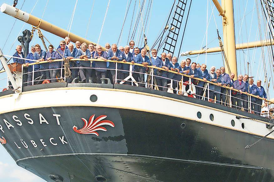 Travemünde. Unter dem Motto „40 Jahre rund um die Welt“ veranstaltet der Passat Chor am Samstag, dem 6., und Sonntag, dem 7. August, am Kreuzfahrtterminal Ostpreußenkai in Travemünde eine abwechslungsreiche Geburtstagsfeier. Neben Spiel und Spaß für Kinder sowie Essen und Trinken von der Küste werden Chor- und Bandmusik vom Feinsten geboten. Hierbei treten neben dem Passat Chor folgende Gruppen auf: die Brass Band der Freiwilligen Feuerwehr Bad Schwartau (Samstag um 15 Uhr und Sonnatg um 11.30 Uhr), der Lübecker Shanty-Chor „Mövenschiet“ (Samstag um 16.15 Uhr), der „Gemischte Chor“ (Samstag um 17.15 Uhr), die Passat Chor Combo (Sonntag um 12.45 Uhr), der Shanty-Chor „De Seilers“ (Sonntag um 13.45 Uhr), der Chor „De TraveMünder“ (Sonntag um 14.45 Uhr) und die Kultband „Timmerhorst“ (Sonntag ab 15.45 Uhr). Der Passat Chor selber bestreitet den musikalischen Auftakt am Samstag um 14.15 Uhr. Am Sonntag tritt der Passat Chor um 11 Uhr sowie um 16.45 Uhr auf. Die Kultband Timmerhorst, das Therapeutikum des Nordens für Küstensound und irische Pop und Pub Songs, bereichert das Programm. Seit über 30 Jahren sind die fünf Nordfröhlichen mit vielen TV- und Rundfunkauftritten ein Garant für fröhliche Küstenmusik. Ganz besonders hervorzuheben ist das Treffen des Passat Chores mit Franz Albers & Käptn Kruse am Samstag ab 18 Uhr. Wiebke Kruse und Franziska Rademacher singen mit ihrer Band alte Shanties. Bei ihrem Auftritt erleben die Besucher Gesang und gesprochenen Text. Zusätzlich zum musikalischen Genuss liegen das Feuerschiff Fehmarnbelt, die Galeasse Fridthof, der Traditionssegler Verwisseling sowie der Seenotkreuzer Hans Hackmack am Kai, die im Rahmen von Open Ship besichtigt werden können. „Für all unsere Fans haben wir zu unserem großen Jubiläum eine neue CD produziert, die für 10 Euro über die Homepage oder bei unseren Auftritten erworben werden kann,“ berichtet Pressesprecher Jonny Holm. Und so fing alles an: Über Jahrzehnte war der Männer Chor der Travemünder Liedertafel von 1843 e.V. aktiv, bis am 19. Dezember 1976 nach einem Weihnachtssingen im Priwallkrankenhaus Travemünde die Idee geboren wurde, sich fortan Passat Chor zu nennen. Die gute alte Lady Passat, ein Segelschiff aus der legendären Serie der P-Liner, der Reederei Laeisz hatte in Travemünde seinen letzten Liegeplatz gefunden und stand Pate bei der Namensgebung. Am 1. April 1977 erfolgte die offizielle Zustimmung dazu auch von der Hansestadt Lübeck , dem Sportamt, als Hausherr des Schiffes. Damit begann die Erfolgsgeschichte des Passat Chores. Entscheidend für die Songs und Arrangements war der Komponist, Texter und Arrangeur Heiko Fenn (1918 – 2016) ,der mit unzähligen Liedern den Passat Chor geprägt hat. Und natürlich die Chorleiter, die mit ihren persönlichen Akzenten den Passat Chor erfolgreich musikalisch geführt und weiterentwickelt haben: Ernst Günter Hinz (1976 bis 1992), Dr. Christoph Dammann (1992 bis 1997), Wolfram Wende (1997 bis 2007) und Stephan Martin Fleck (seit 2007). Fünf LPs sowie acht CDs wurden produziert. Ab 1980 war der Chor 25 mal auf Auslandsreise. Reisen ins In-und Ausland von USA, Canada, China, Brasilien, Argentinien bis Zimbabwe und viele europäische Länder machten den Chor international bekannt. Es gab zahlreiche Auftritte bei Funk und Fernsehen sowie auf Festivals. Der Passat Chor gilt bis heute als offizieller musikalischer Botschafter der Hansestadt Lübeck. „Unser besonderer Dank geht an alle Fans und Unterstützer, die uns immer die Treue gehalten haben,“ so die Mitglieder des Chores. Weitere Infos finden Interessierte auf der Homepage unter www.passatchor.de.