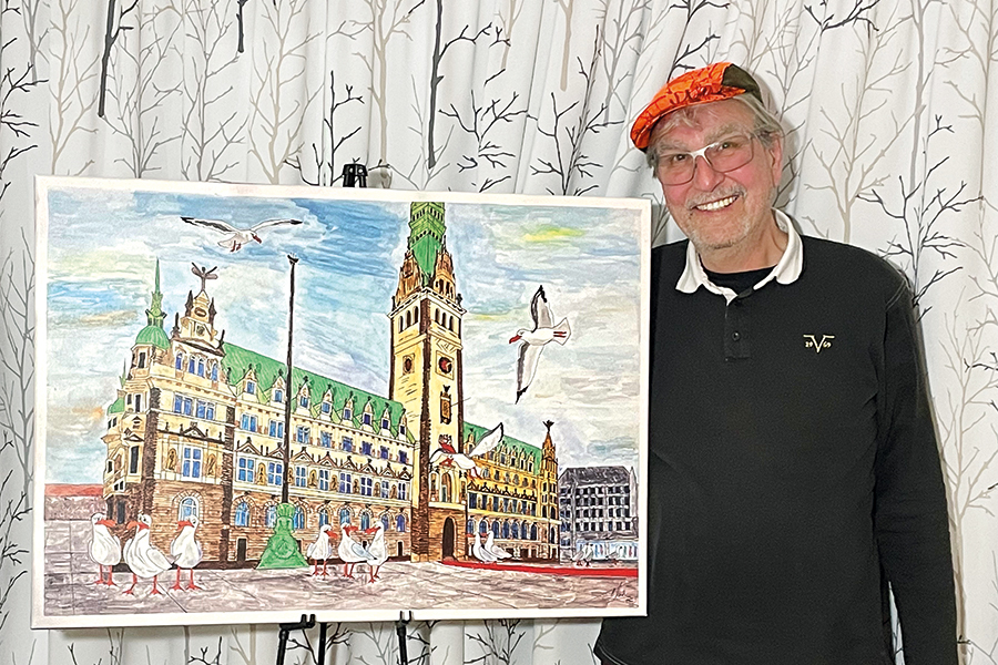 „Wo sonst, wenn nicht zu Hause?“ Die Ausstellung ist vom 13. April bis einschließlich 4. Mai in der BAR 54, Strandallee 90, täglich von 16 bis 20 Uhr geöffnet. Der Künstler wird am Sonntag, dem 13. April, anwesend sein, um seine künstlerischen Ideen und Kreativität mit den Besuchern zu teilen. Zitat: „Zeichnen ist die Kunst Striche spazieren zu führen. (Paul Klee)“. Frei nach diesem Motto arbeitet Udo Cordes in seinem Atelier in Timmendorfer Strand.