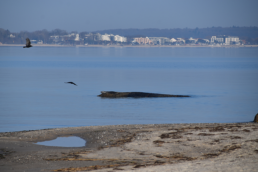 Es handelt sich dabei mit großer Wahrscheinlichkeit um den Buckelwal, der seit einiger Zeit in der Lübecker Bucht herumirrt und unter anderem vor Travemünde, Niendorf/Ostsee und Scharbeutz gesichtet wurde.