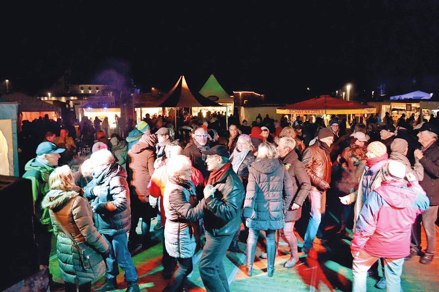 Niendorf. Zum Jahreswechsel fand im malerischen Hafen von Niendorf/Ostsee erstmals ein Neujahrsmarkt mit Live-Showprogramm, kulinarischen Angeboten und verschiedenen Ausstellern statt. Gestartet ist die viertägige Veranstaltung, die von Manfred Franz von der Show-Agentur Arnesvelde organisiert wurde, am 31. Dezember mit Live-Musik vom „Volker Frank-Duo“ am Vormittag, bevor abends die Silvester-Party mit DJ René Kleinschmidt für Stimmung bei jung und alt sorgte. Ab 22 Uhr füllte sich die Tanzfläche und das Publikum konnte zwischendurch verschiedene, internationale Silvester-Bräuche unter dem Motto „Silvester der Kulturen“ kennenlernen und direkt vor Ort zelebrieren. Mit den letzten zwölf Glockenschlägen (unmittelbar vor Mitternacht) verzehrten einige der Gäste zwölf Weintrauben, ein Brauch aus Spanien, der fürs neue Jahr viel Glück bringen soll. Und auch beim traditionellen Donauwalzer aus Österreich tanzten einige Paare, zum Teil mit Sektglas in der Hand, zu Beginn des neuen Jahres. Nach dem Silvester-Feuerwerk wurde bis um 2 Uhr nachts zu Party-Hits, Oldies und den Hits des vergangenen Jahres ausgiebig getanzt und fröhlich gefeiert. Auch am Neujahrstag füllte sich der Festplatz im Hafen zum Frühschoppen mit dem Shantychor Neuengöhrs schnell, lediglich an den letzten beiden Veranstaltungstagen wurde es ruhiger, was zum Teil an der verfrühten Abreise von Gästen und den sehr kalten Temperaturen unter null lag. Den anwesenden Besucher wurde aber bei den täglichen Feuer-Shows am späten Nachmittag eingeheizt oder sie verfolgten zuvor das Live-Programm, das von „KüstenJörn“ und dem Duo „Lui & Fiete“ mit viel Witz präsentiert wurde. Das Resümee nach der Premiere im Niendorfer Hafen ist positiv: Der Veranstalter war zufrieden und die Gäste würden sich auf eine Wiederholung zum nächsten Jahreswechsel freuen. Zwei Tage vor dem Jahreswechsel fand außerdem das "Fest zwischen den Jahren", eine Veranstaltung des Fremdenverkehrsvereins, auf dem Niendorfer Balkon statt. Auch dieser musikalischer Punschtreff wurde von Gästen und Einheimischen sehr gut besucht. R.K.