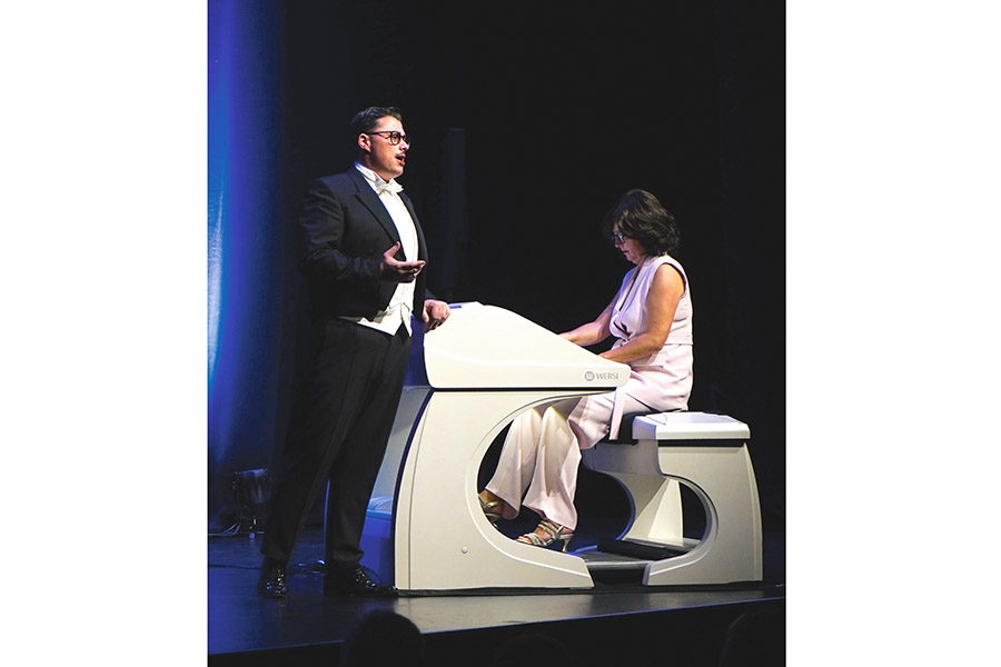Mit Claudia Hirschfeld arbeitet Ricardo Marinello bereits seit 2017 zusammen. Sie bietet ihm mit ihrer Wersi Orgel die orchestrale Begleitung, die ihm sonst nur große Sinfonieorchester ermöglichen. Claudia Hirschfeld ist seit fast 40 Jahren professionell als Tastenvirtuosin unterwegs und zählt zu den absoluten Superstars an ihrem Instrument. Neben ihrer Tätigkeit als Solistin hat sich Claudia Hirschfeld eben auch als „Orchester“ für namhafte Sänger, Chöre und Instrumentalsolisten einen Namen gemacht. Auch als Komponistin erhielt Claudia Hirschfeld bereits unzählige Preise, gewann unter anderem den UK Songwriting Contest und wurde mit dem International Songwriting Award ausgezeichnet. In Timmendorfer Strand ist sie seit Jahren ein immer wieder gern gesehener Gast und stellt dabei mit immer neuen Programmen ihre musikalische Wandlungsfähigkeit unter Beweis. Zudem liebt sie in der kleinen Kapelle St. Johann Niendorf die Nähe zum Publikum.