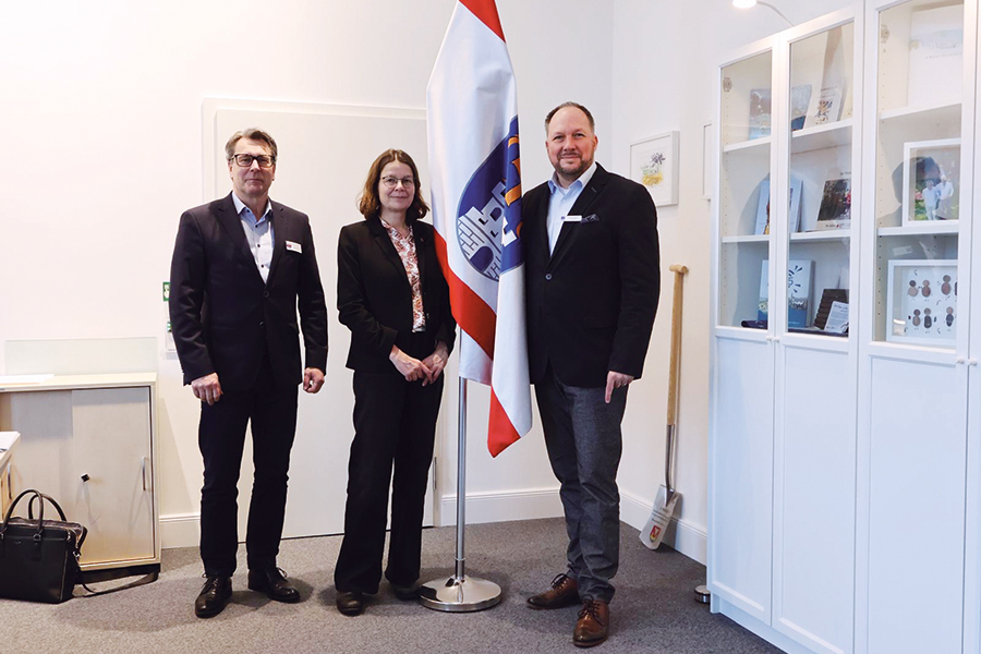 Bürgermeister Kuno Brandt (links), Bürgermeisterin Dr. Katrin Engeln und Landrat Timo Gaarz haben sich zu einem Abstimmungstermin getroffen.