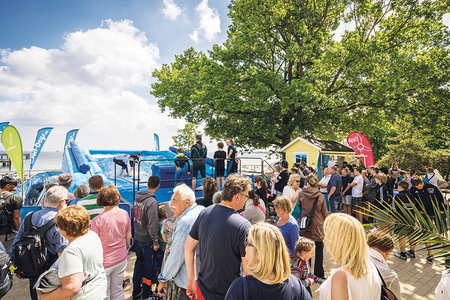 Malezki und Bachorz holen für das Projekt auch Thilo Trefz von der Brand-Guides GmbH mit ins Boot, der mit seinem Team bereits 2017 und 2018 mit den „Surf Days“ einige Tage mit einer Wellenreitanlage auf dem Seebrückenvorplatz in Timmendorfer Strand vor Ort war. Damals bildeten sich lange Schlangen vor der Anlage.