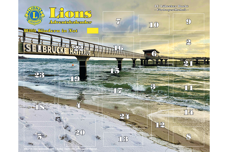 „Mit dem Kalender kann man gewinnen und zugleich aktiv helfen,“ so die Club-Präsidentin Carolin Dreismann. „Mit dem Erlös aus unserem Lions Adventskalender 2025 werden wir wieder zwei Projekte fördern: Das Projekt des Kinderschutzbundes Ostholstein ,Hilfe für Familien mit Kindern in Not' bietet in unserer Region zahlreiche aufeinander abgestimmte Unterstützungsangebote für Alleinerziehende und Eltern mit Kindern, die sich überfordert fühlen. Den täglich mehr als 1.500 in den Einrichtungen des Kinderschutzbundes betreuten, gefährdeten Kindern und Jugendlichen der in Not geratenen Eltern sichert diese Hilfe entsprechende Bildungs- und Entwicklungschancen. Darüber hinaus soll die überaus wichtige Arbeit der Tafel Neustadt/Timmendorfer Strand mit einer Spende unterstützt werden. Die gemeinnützige Hilfsorganisation versorgt sozial und wirtschaftlich benachteiligte Bedürftige, deren Zahl auch in unserer Region erneut angestiegen ist.”