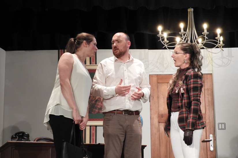 Die Komödie von Jack Popplewell kommt etwas zurückhaltender daher als frühere Produktionen. Statt derber Sprüche gibt es hintersinnigen Humor: „Manche Gags zünden erst nach kurzem Nachdenken“, so beschreibt es Jens-Peter Kraushaar. Lange stand er selbst auf der Bühne, heute ist er die Instanz auf dem Regiestuhl: „Das muss ja auch einer machen“, meint er stoisch, doch das kann nicht darüber hinwegtäuschen, wie ernst er seine Aufgabe nimmt. Bis zu drei Stücke wählt er jährlich aus, stellt sie seinem Ensemble vor und gemeinsam wird dann entschieden, worauf sich das Publikum freuen darf. Wenn es nach Lesungen und Rollenverteilung auf die berühmten Bretter geht, die auch in Ahrensbök die Welt bedeuten, ist er ein akribischer Arbeiter. Anschlüsse, Auf- und Abgänge, kleine Gesten und große Blicke, das deutliche Sprechen – alles muss sitzen und wenn dem Spielleiter etwas auffällt, notiert er es in einer großen Kladde. Ebenso aufmerksam verfolgt das Technik-Team das Geschehen. Michael Freelandt, Niklas Deelmann und Martin Geisler sind dafür verantwortlich, dass der Kronleuchter erstrahlt, wenn auf der Bühne der Lichtschalter betätigt wird und sie liefern das passende Geräusch, wenn etwa ein Stuhl umfällt, weil jemand – zum Beispiel eine Einbrecherin – im Dunkeln umherschleicht.