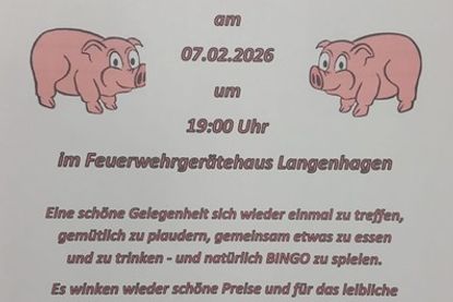 Langenhagen. Die Freiwillige Feuerwehr Langenhagen lädt zum Bingospielen am Samstag, dem 7. Februar um 19 Uhr im Feuerwehrgerätehaus ein. Es wird um Gewinne gespielt. Für das leibliche Wohl zu kleinen Preisen ist gesorgt. (red)