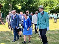 Dabei ergab sich hier ein besonders schönes Bild, denn erstmalig waren auch die Damen der Neustädter Schützengilde in eigener Uniform vertreten und durften mit ihrer eigenen Fahne mitlaufen: „Wir sind als „Damenschießclub“ eine Untergruppe in der Neustädter Schützengilde und sehr stolz, dass wir nun durch die Uniformen und die Fahne als solche auch deutlich sichtbar werden“, sagte 1. Vorsitzende Ulrike Niedrich im Gespräch mit dem reporter.