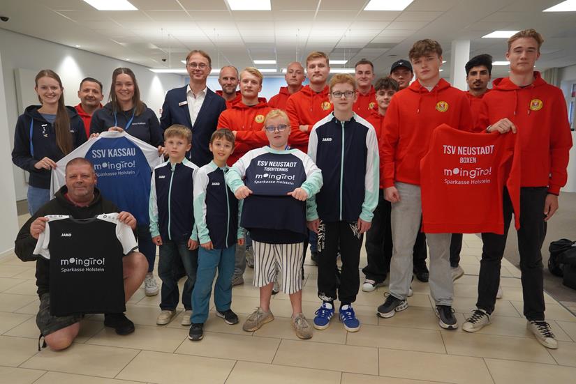 Bei einem offiziellen Übergabetermin in den Räumlichkeiten der Sparkasse Holstein in Neustadt überreichte Filialleiter Karsten Wittorf die entsprechende Ausrüstung. Trainingsanzüge konnten von den Schützen SSV Kassau und dem Tischtennis-Nachwuchs des ESV Neustadt in Empfang genommen werden. Hoodies gab es für die Boxsparte des TSV Neustadt und die jungen Fußballer der SG Schashagen/Pelzerhaken-Altenkrempe laufen künftig in neuen Trikots auf. Ermöglicht wurde die Trikotaktion durch den Sonderfonds des Los-Sparens. (mg)