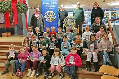 Oldenburg. (UL) Der Rotary Club Oldenburg in Holstein übergab in der Pausenhalle 155 Bücher für die 2. und 4. Klassen der „Grundschule am Wasserquell“ in Oldenburg. Die 2. Klassen erhielten das Buch „Fiete Hering – Abenteuer im Müllmeer“ von Guido Kasmann sowie die 4. Klassen das Buch „Auf der Suche nach Nima“ von Marie Fenske. Der Club möchte so die Schreib- und Lesekompetenz der Schülerinnen und Schüler fördern.