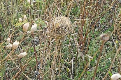 Ein besonderer Fund bei den Mäharbeiten waren mehrere Kugelnester von Zwergmäusen, welche kunstvoll an Gräsern befestigt waren.