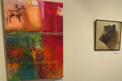 Lina Böge ist mit ihren drei Jahren die jüngste Teilnehmerin und zeigt ihre farbenprächtigen Werke „Zauberwald“ und „Himmelsscheibe“. 75 Jahre trennen sie zum ältesten Künstler Peter Rumohr. Mit 16 Jahren lernte er Maler. „Heute male ich nicht mehr Quadratmeter an, sondern kleinere Flächen“, erklärt er mit leuchtenden Augen. Sein Gemälde „Eichhörnchen“ besticht nicht nur durch ein Farbspiel zwischen Licht und Dunkel, sondern auch durch die feinen Details.